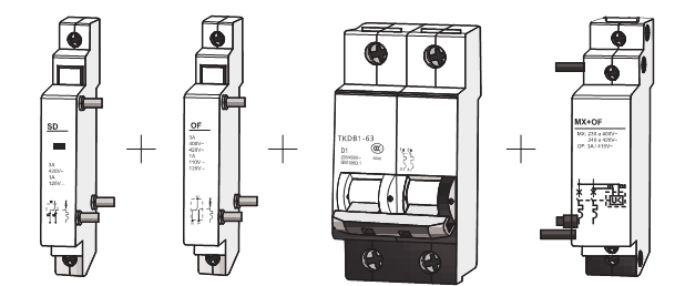 示例:TKDB1-63/2P/C63+(MX+OF)
