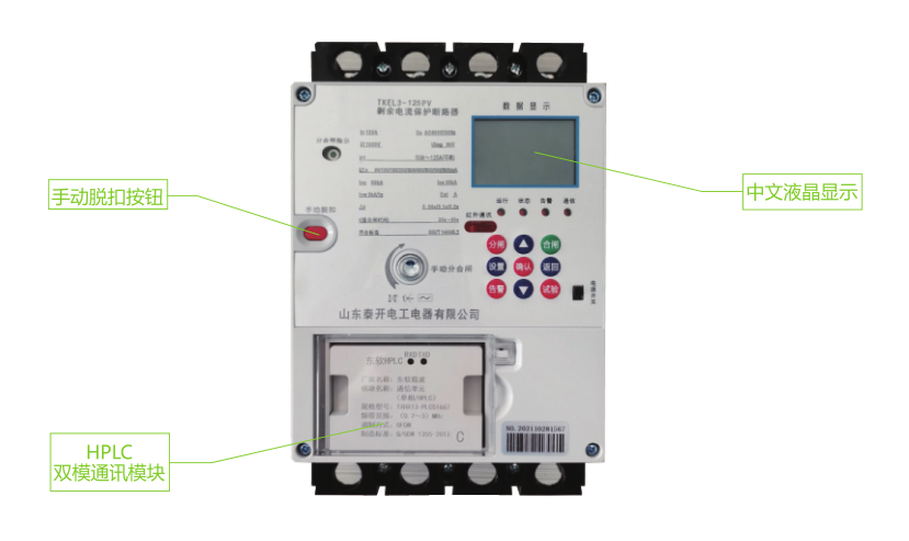 TKEL3-125PV剩余电流保护断路器(以下简称断路器),主要针对泛在电力物联网对低压配电的各种要求而进行全新研发,集保护功能、测量功能、远程控制功能、通讯功能、消防预警监控于一体的新一代产品。本产品适用于交流50Hz,额定工作电压AC400V及以下、三相四线中性点直接接地的的低压配电线路中,除具有过载、短路、漏电、过压、欠压等保护功能外,还可以实现电流、电压、功率因数、温度等电力参数的高精度计量功能,为全台区电力供应与负荷响应提供数据支撑,真正实现物联网智能配电。本断路器还可以实现光伏发电侧带电并网保护,被动式防孤岛保护功能,特别作为分布式光伏发电系统的保护开关使用。